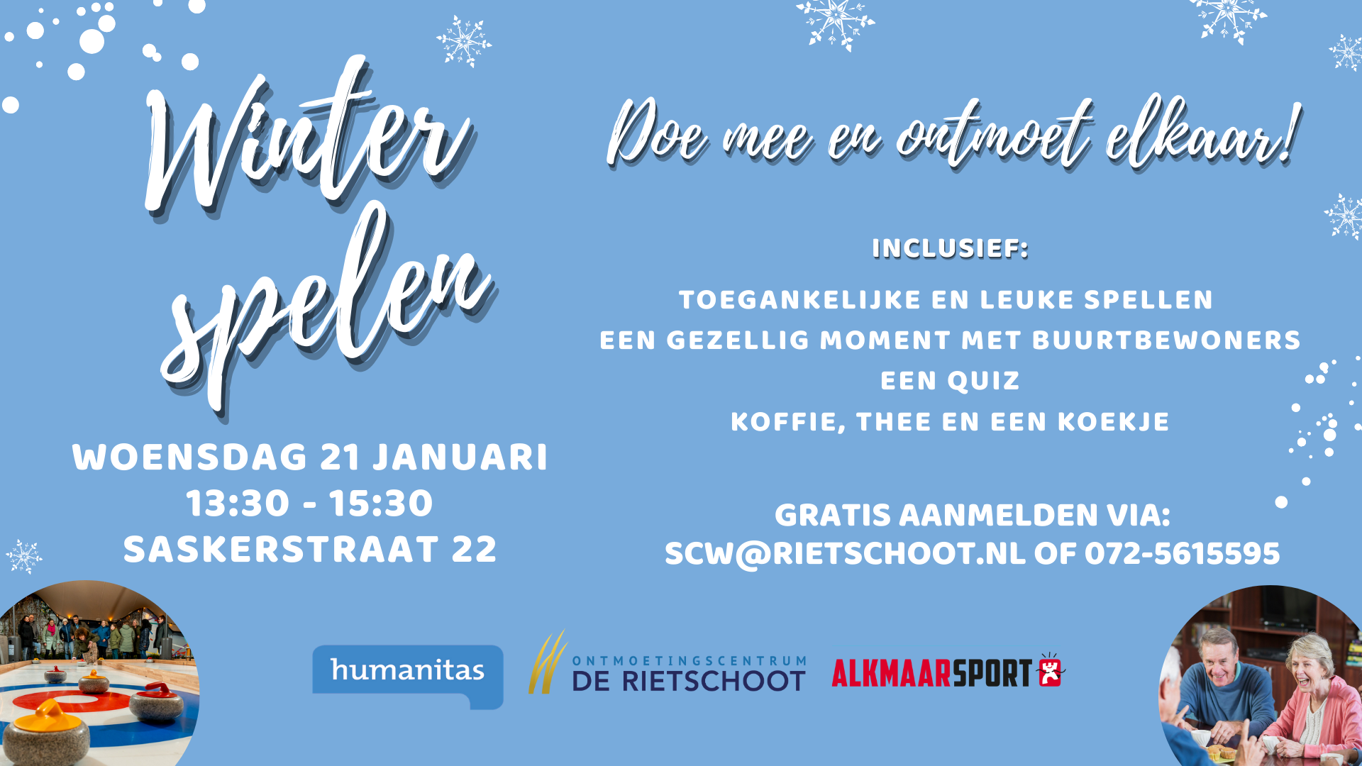 Heb je zin in een gezellige middag, nieuwe ontmoetingen en leuke activiteiten? Dan ben je van harte welkom bij de winterse spelmiddag in Ontmoetingscentrum De Rietschoot!